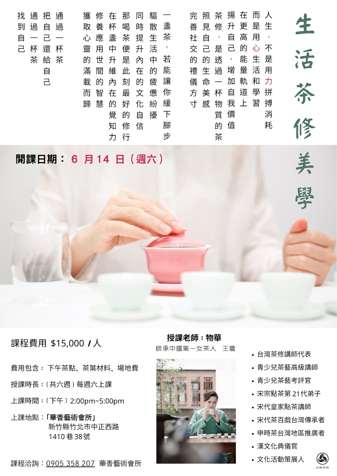 上課費用:每人$15,000元/共6堂 (含茶點/茶品)